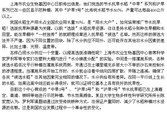 上海選出節(jié)水百分之五十的抗旱新稻種